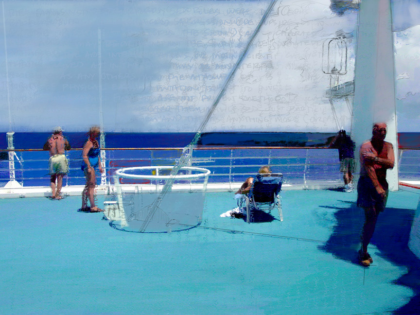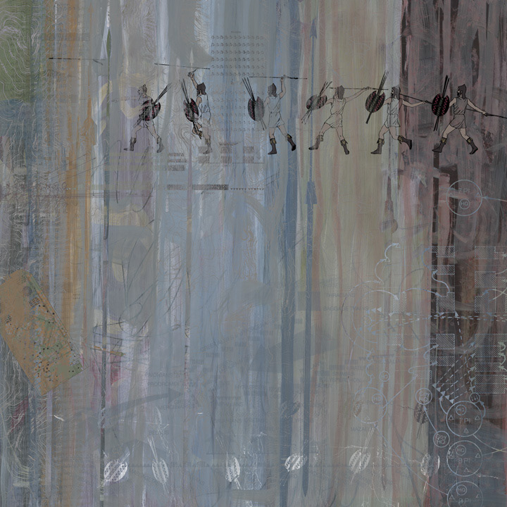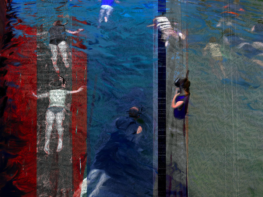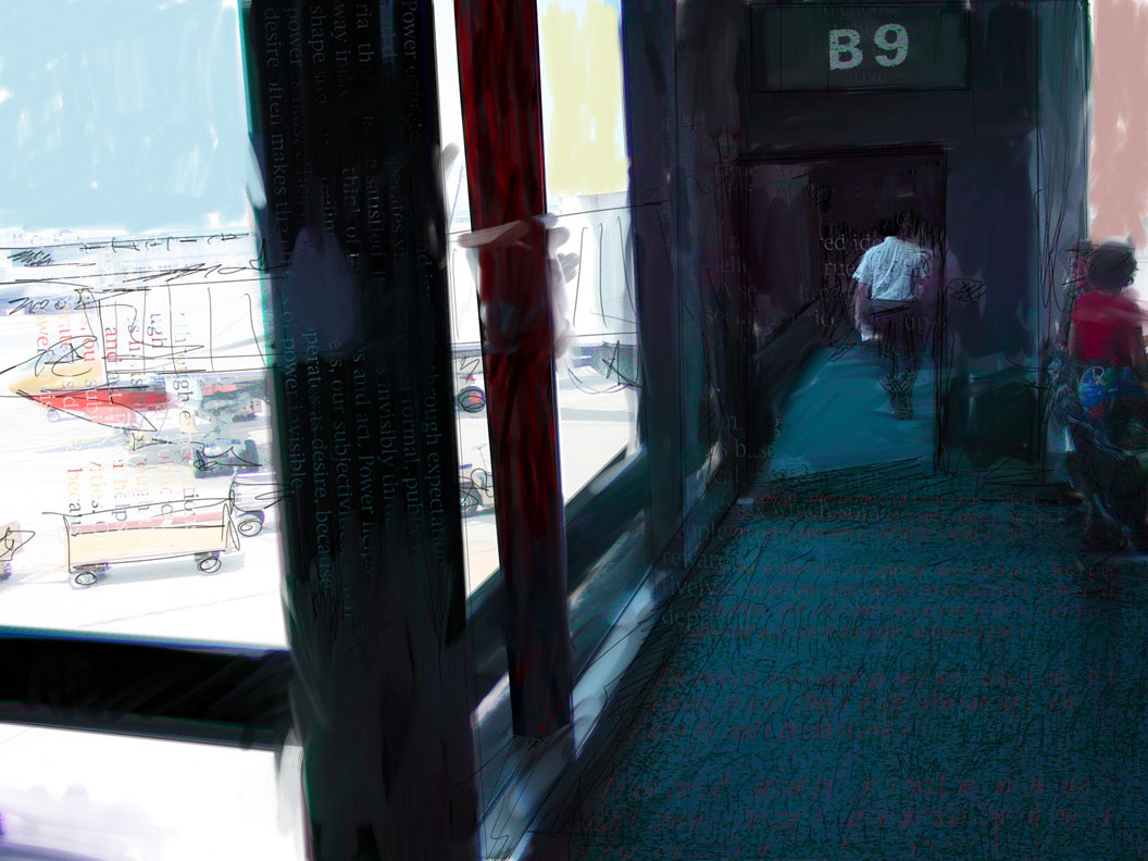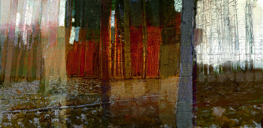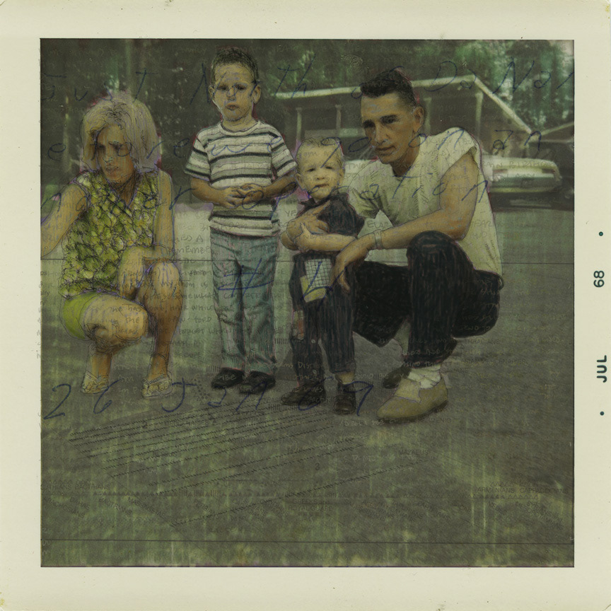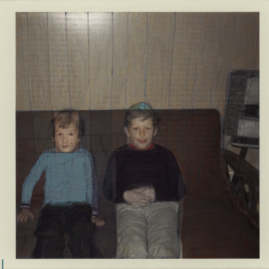 Digital art combining traditional and contemporary ways of working. Painting (acrylic, digital), drawing (graphite, charcoal, digital), text, photography (digital and Polaroids), brought together by software (Corel Painter and Photoshop).