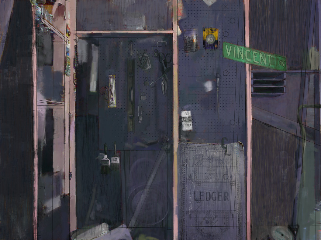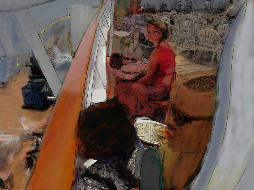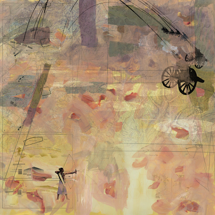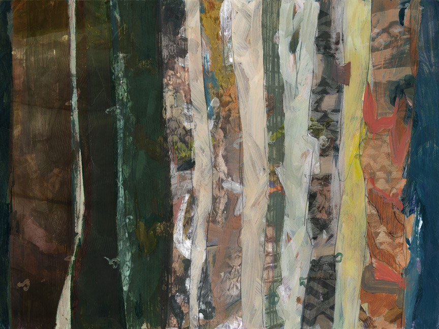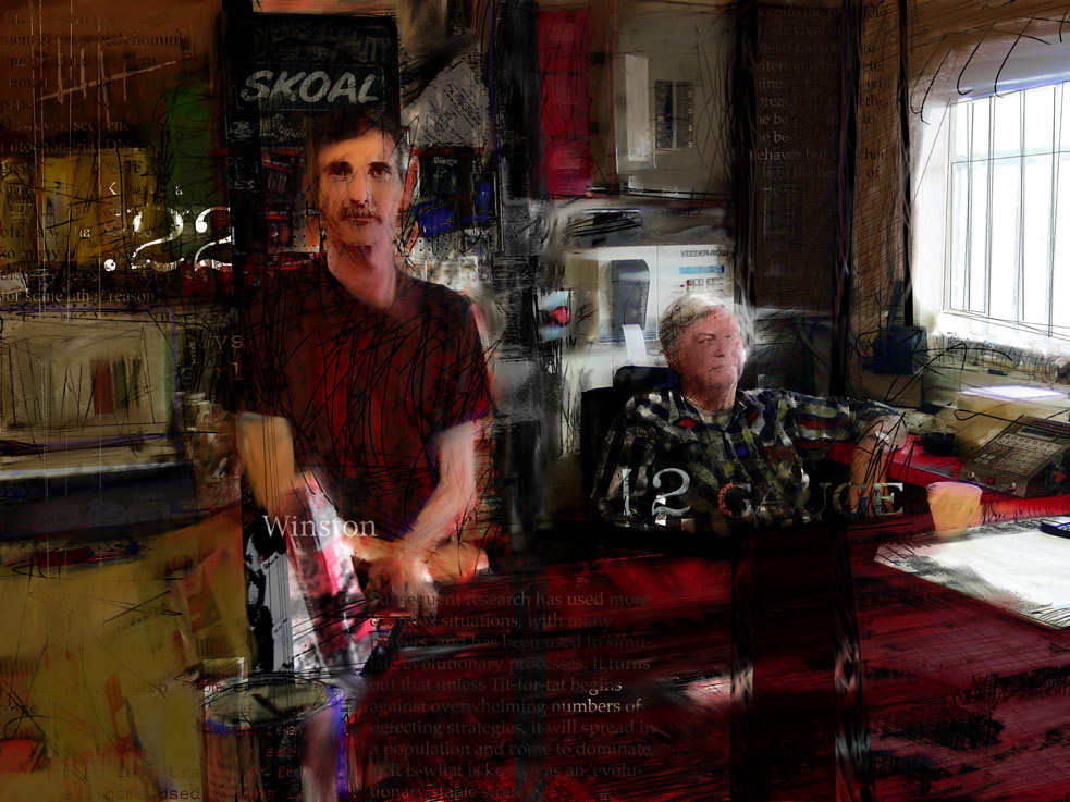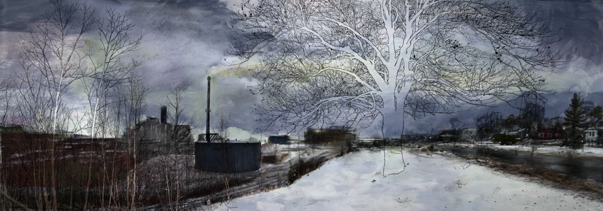 Digital art combining traditional and contemporary ways of working. Painting (acrylic, digital), drawing (graphite, charcoal, digital), text, photography (digital and Polaroids), brought together by software (Corel Painter and Photoshop).
